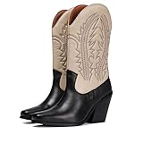 • ESTILO: Estos botines tienen sutiles detalles de estilo western, como el filo superior redondeado y el tacón ancho de piel sintética.