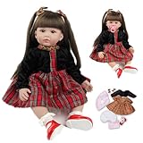 - 🦀🦀DISEÑO REALISTA: Muñeca con aspecto realista, muñecas reborn silicona blanda cabello largo y vestido a cuadros rojos, perfecta para juegos imaginativos