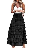 Falda larga de tul para mujer, acampanada, con volantes, de malla, de cintura alta, escalonada, enagua, Negro, M