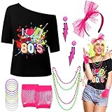 - 【Regalo Ideal】Este conjunto de dsfraz de 80s de neón para mujer te hará destacar en la fiesta, no solo eso, los accesorios mujer de ropa años 80 disfraz también son el regalo ideal para damas,...
