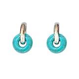 - DISEÑO / MEDIDAS - Bonitos pendientes de aro chapados en oro o en platino con colgante de piedra en forma de donut. Aro de aproximadamente 16 mm de diámetro y 3,5 mm de grosor, y piedra de unos 13 x...