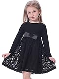 - El vestido para niñas es una pieza elegante, con un clásico color negro. Las mangas largas de encaje añaden un toque de romance y feminidad, mientras que la espalda hueca le da un toque elegante....