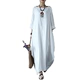 • Vestido de verano para mujer, cuello redondo, manga larga, vestido boho para mujer, vestido largo de algodón blanco, vestido maxi para mujer, vestido largo de manga larga, vestido largo festivo,...