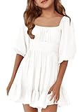 - Características: mini vestidos de verano lindos para niñas, vestido casual y de moda, vestido acampanado, escote cuadrado, espalda de corbata, cintura elástica fruncida, vestidos de manga corta de...