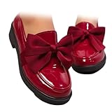 Mocasines ortopédicos de plataforma para mujer, elegantes mocasines de charol antideslizante con lazo, mocasines gruesos para oficina de negocios, rojo vino, 44 EU